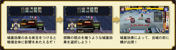 家宝には、特別な能力を武将や戦場に付与させる効果(城塞効果)があります。