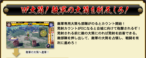 戦場にある『大筒』は一定時間で城に砲撃します。