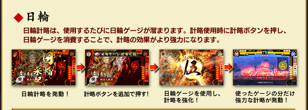 計略は各武将が持つ必殺技です。士気ゲージを消費することで使用できます。