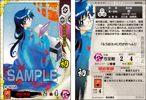 | 1.1 | 浅019 | SR | 茶々 | 1 | 魅 | 2 | 4 | 弓足軽 | 激励舞踊 | 4 | ||||