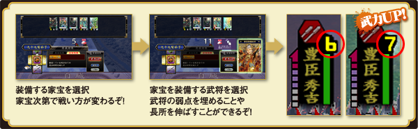 家宝には、武将に装備させるとその武将を強化する効果があります。
